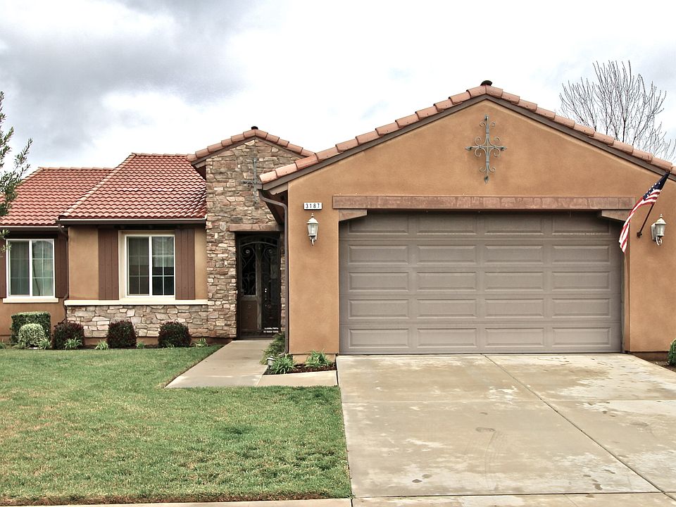 This great home in Clovis Unified school district has 3 bedrooms, 2 baths and an open floor plan. You will love the hand-scraped hickory hardwood floors in the living, dining, and hallway areas. The kitchen has dark wood cabinetry with granite countertops and a pantry. All bedrooms have ceiling fans and the master suite boasts a large walk-in closet. Master bath has dual sinks, a linen closet, and soaker tub with separate shower. The large backyard features a covered patio, stamped concrete walk-ways and entertainment area. Owners have added lighting, extra electrical outlets and automatic watering system to make it an entertainers delight. The large side yard is perfect for future RV parking and the 2-car garage is finished and has epoxy flooring. Other features include a tankless water heater, extra insulation in the roof, fruit trees, walking trails, and a community park.