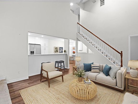 Step inside this beautifully upgraded home featuring a spacious and bright living room with cozy fireplace, perfect for both relaxing evenings and lively gatherings. The large dining room shines with natural light pouring through the skylights and enhanced with upgraded lighting. Culinary enthusiasts will love the modern kitchen, complete with sleek finishes and a gas stove that makes cooking a joy. An upgraded 1/2 bath completes the main level. Upstairs, retreat to the generously sized primary bedroom that comfortably fits a king-sized bed, offers a large walk-in closet, and boasts a private balcony - perfect for morning coffee or evening relaxation! Primary bedroom includes an en-suite, fully renovated bathroom featuring heated tile floors, creating a spa-like experience. Additional bedrooms provide versatility, including a decent-sized 2nd bedroom with walk-in closet and a smaller 3rd bedroom that's perfect for home office with an ample closet. Renovated 2nd bathroom offers fresh style and comfort and is adjacent to the 2nd bedroom. Downstairs, the finished basement with egress window provides a flexible space - ideal as a child's playroom, man cave, media room, or home gym and has a radon mitigation system, already installed. Enjoy peaceful mornings or evenings on the front patio overlooking Arapaho Park, it is an incredible view! Completing this exceptional townhome is an over-sized two-car garage, providing abundant storage and parking. Your new home truly combines comfort, style, and thoughtful upgrades throughout! Close to schools, parks (literally right outside the front door), community pool, shopping and more. Preferred Lender offering rate buy down, ask for more details. Listing Agent sponsors an animal adoption through a local rescue, for up to 1 year after purchase of home. Don't wait, schedule your showing today!!