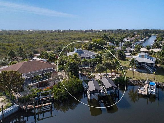HUGH REDUCTION!!! SELLER SAYS SELL!! 5905sq' of living area in this beautiful Key West style home. You will always feel like you're on vacation with the screened in remote control resort style pool & spa, bar seating, rec room and workout area. Also downstairs is an office-den-bedroom area, full bath, a workshop and a garage for two cars. Lovely yard with trickling fountains, sitting areas, fruit and coconut trees and luscious plants that add to this serene and peaceful location. Upstairs is a gourmet kitchen with beautiful granite counters, breakfast bar, formal dining area, and a large living area with a wood fireplace that has sliding pocket doors that open to a huge balcony overlooking the pool. There are two master suites, a guest room, a full bath and a laundry room. All of this is located on a sailboat access canal that is minutes to the open water of Pine Island Sound and the beaches of Sanibel Island. Walk around composite docks with two 8,000lb remote controlled covered lifts. Plus 4000 pound davits, a fish cleaning station and a bait freezer. There are many more amenities - one being, there is an elevator shaft built in already! You won't be disappointed!