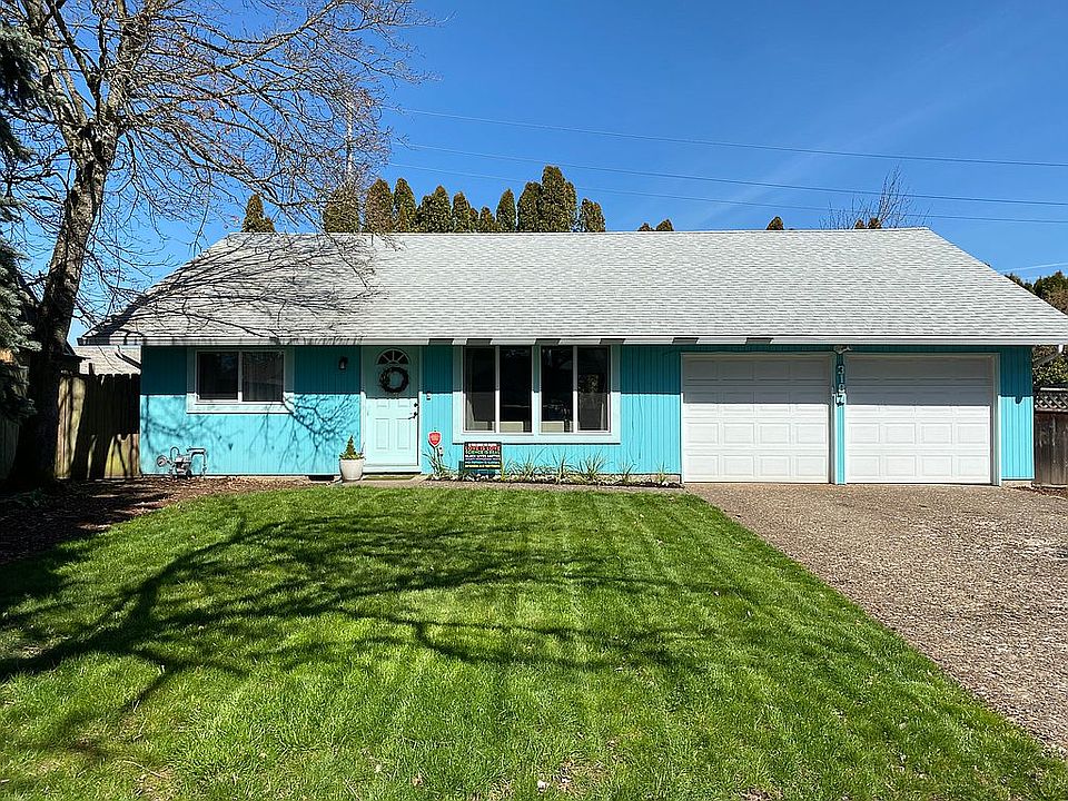 Fantastic updated home in Ferry Street Bridge! New laminate wood floors, doors and hardware, fresh interior and exterior paint, and kitchen countertop. Bright and open inside. Living room with dining area. Kitchen with eating bar opens to family room with fireplace and slider. Two closets in master suite. Workbench in garage with attic storage. Newer roof, fenced backyard, patio and privacy hedges. 5 minutes to school and stores.