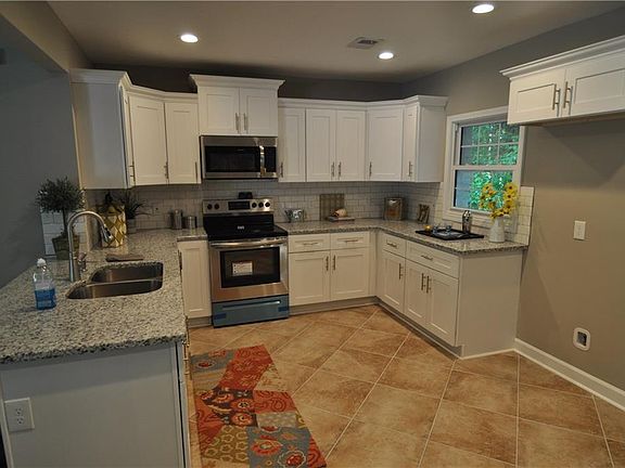 Unbelievable Intown lot size at almost an acre! Wonderfully renovated ranch with open floor plan perfect for entertaining. New kitchen with white cabinets, granite counters, tile floors, tile backsplash, stainless appliances, and open view to living room. Home has tons of natural light with bay window and charm galore with fireplace & arched doorways. Refinished hardwood floors. Updated baths with tile showers, tile floors, & new vanities. Mud room with laundry. Brand new deck in enormous yard!
