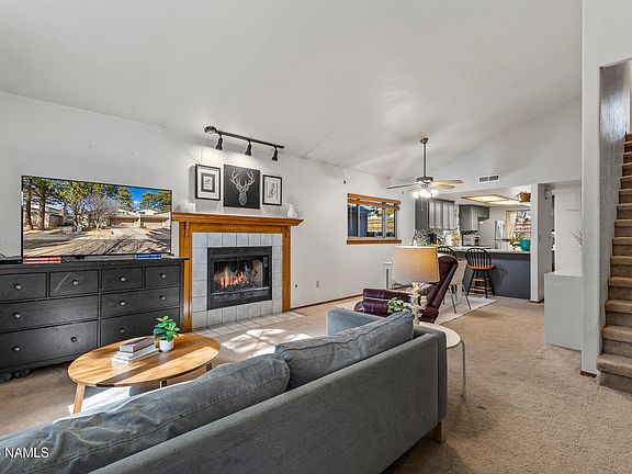 This charming two-story townhome offers views of the San Francisco Peaks. Ideal as a starter home or rental property, conveniently located near shopping, schools, and Flagstaff's amenities. Situated on a quiet street, featuring a cozy central fireplace to the dining room, kitchen, or living room. The backyard is perfect for gardening or grilling. Both upstairs rooms offer walk-in closets. The laundry room is conveniently located on the first floor. The South facing attached garage provides secure parking and additional storage space, while the driveway offers extra parking for guests. Whether you are looking for a turnkey cozy retreat or a family-friendly environment, this townhome with its picturesque views and convenient location is an ideal choice!