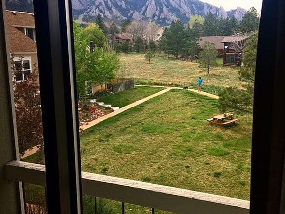 VIEWS, VIEWS, VIEWS, enjoy South Boulder living at its best!! 2 bedroom, 1.5 bathroom, 1064 square foot townhouse nestled against the Flatirons. Northwest facing townhouse unit with an unobstructed views of the Flatirons. Only 1 block away from the Shanahan Ridge trail that connects to miles of trails throughout NCAR, Chataqua and Eldorado Canyon. Open space is all around you! This townhouse is in a perfect location for easy access to everywhere you want to go. Neighborhood is on the Boulder bus route (on Lehigh) for a short ride into downtown Boulder. And Highway 36 and the Table Mesa RTD Park and Ride are only 2.5 miles away, making for a quick commute into Denver! Table Mesa shopping center with King Soopers, Lucky's Market, Southern Sun and other great restaurants are less than a 5 mins drive and South Boulder Recreation Center is in the neighborhood and within walking distance. This light-filled townhouse is a 2 story unit with vaulted ceilings. Both the master bedroom, guest bedroom and full bathroom are on the top floor. Wake up to the most amazing view of the Flatirons from your master bedroom with its sliding glass door and partial balcony. Guest bedroom is lofted and looks down into the living room. Kitchen, dining room and 1/2 bath are on the main level. Enjoy your summer nights dining outdoors while gazing at the Flatirons from the large deck off the kitchen. Great for growing container gardens too! Inside features have rustic feel and includes a wood burning fireplace in the living room, wood paneled wall, vaulted ceilings, skylight and open floor plan. New washer and dryer. Use of detached garage great for extra storage or a single car AND the community pool and garden are included. There is no better time for this location than during the summer! This is a sublet for 3 months from May - July 31st. (Flexible on May start date). Available for $1850 per month. Non smoking, 2 pets allowed. Credit check will be required by rental management company.
