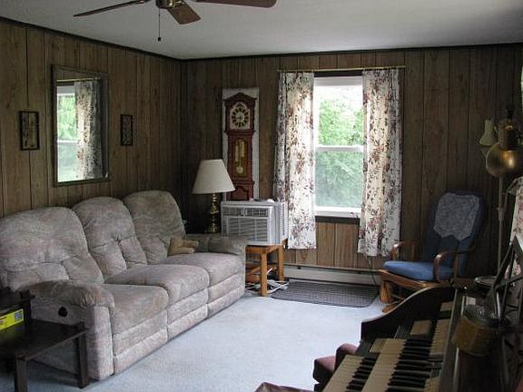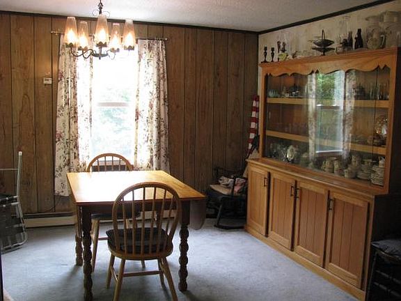 Easy living. Three bedroom ranch is move-in ready. Spacious living room. Deck off dining room overlooks large back yard. Bordered by a creek on the North. Wood stove in basement will heat house. Lovely mature trees.