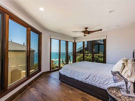 Gorgeous, bluff side, luxury home w/sweeping ocean, whitewater & Catalina views. Fabulous soft contemporary home was rebuilt in 2017 and located on a private street with private neighborhood access to Thousand Steps Beach. Upper level has an open floor concept with custom glass windows & folding accordion doors blending the view deck with the interior. The upper level includes a gourmet kitchen featuring stainless steel Viking appliances inc. dishwasher & wine frig. Plenty of counter space plus a counter top for eating in the kitchen. The dining room features folding glass accordion doors leading out to the most spectacular ocean view deck, allowing a private area to enjoy sunsets, alfresco dining, or lounging in the sun. An abundance of natural light is found throughout the home. Ocean views are found in every room in the upper level. Wide planked wood floors have been installed throughout the entire home. The master suite is located on its own level boasting more views, its own ocean view deck, and a walk in closet. The master bath has a soaking tub, separate shower, vanity area, and double sinks. The downstairs level contains three more bedrooms total, one with en suite bathroom, as well as two more bedrooms that share a bath. Laundry area is also found on this level. This home provides modern coastal living with an abundance of luxury and beauty. Home available furnished, short or long term, or unfurnished: long term. Negotiable. Call agent for short term lease info.