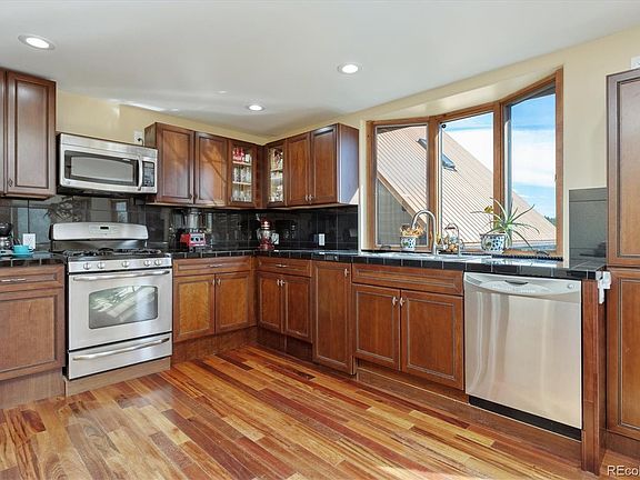 Custom Timber Frame Hybrid Home on 35 acres, built for passive solar heating, in awe inspiring location. Wall of windows dramatically captures one’s attention when you enter. Feel the beauty of nature inside this well-maintained home as you look out the windows of a spacious Great Room accommodating the updated kitchen, dining & living areas. Picture your Christmas tree in the living area w/ 21 ft ceilings & Brazilian Koa hardwood floors. Main floor master suite, 5-piece bath and double walk-in closets. Two large bedrooms, bath and loft overlooking great room on 2nd floor. If you’re looking for mountain living, the beauty of this location, approx. 2.5 miles to coffee shop on Hwy 72 in Coal Creek Canyon, is perfect. Work from home, no problem with Mountain Broadband fiber opt internet. Bring your animals or start your dream of an alpaca/lama ranch. Owners spared no expense in building and designing the barn w/ a tack room & roll up garage door for easy unloading of hay, 5 stalls, 2 separate areas for animals to play, water & electric installed. The ½ acre yard near barn is fenced w/no climb galvanized steel horse fence. Keep your chickens in the animal proof covered pens w/hen houses. Full walk out basement is framed and ready to finish (bath stubbed in). Sophisticated Triangle Tube Prestige in-floor heat along with passive solar & wood stove keep the home toasty, even on cold days. New engineered 16x26 deck with Timber Tech planks and aluminum powered coated railing adds not only beauty, but outdoor useable space for summer grilling & dining. Hummingbirds are known to gather at the feeders on summer days. Once you’re at the property, driveway is split and to the left is the house and garage. Park on over 6,000 sq. ft flat parking area near garage. House & garage are at the top of a gently sloping pine forest. Make time to preview this property, take a hike (creek near bottom of slope), enjoy the natural surroundings & take in the fresh air... BREATHE.
