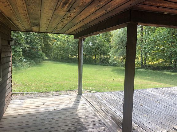 Country setting, privacy, and scenic views for this cedar home on 3 acres m/l in Western Vinton County. Situated on Stevens Branch Road, less than a mile off US HWY 50. 2 bedrooms, 2 bathrooms. Master bedroom has high vaulted ceilings with French doors that open to a sunroom or office space. Kitchen with dining area, living room with fireplace. Full basement with additional space walled off that could be a bedroom if finished and a half bath. Central air, county water, septic, utility room in basement, electric heat pump, detached garage with workshop. With a touch of TLC this property will make a nice home. Call today for your private showing or more information.