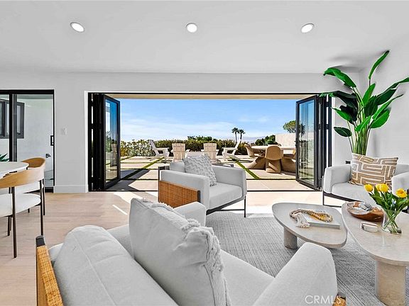 The spacious great room, designed for both relaxation and entertaining, features a dramatic floor-to-ceiling natural stone fireplace and soaring arched ceilings that frame the magnificent west-facing views. Adjacent, the newly updated kitchen boasts sleek finishes, premium appliances, and uninterrupted ocean and canyon views, with convenient access to the rear patio for alfresco dining and entertaining.