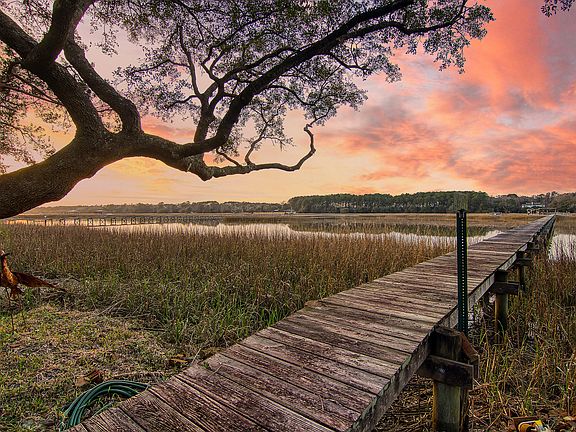 Welcome to your beautiful Bohicket Creek waterfront home on 3+ acres! This home offers tranquil privacy with true Deep Water, 13' at Low tide. You won't be far from the ocean waters with your boat parked on the boat lift or floating dock, which is perfect for a large boat. This custom brick house has been fully renovated top to bottom with truly no expense spared! Included in the renovation is new landscaping spanning the 3 acres and new sod in front of the home. The circular front driveway of the home offers plenty of room for parking, as well as extra parking space near the attached 2-car garage, and even more parking inside and outside the detached 3-car garage and workshop. Step inside through the spacious foyer into the open concept living space with amazingviews of the back yard and water. The redesigned gourmet kitchen offers the same great view which features a center island, gorgeous stone countertops, a tastefully modern backsplash, and high-end stainless steel appliances including a custom fridge panel that blends in seamlessly among the cabinetry. In the living room you'll find a gas log fireplace perfect for cozying up during the colder months. The master suite enjoys gorgeous views of the river, walk-in closets with built-ins to accommodate your full wardrobe, and His & Hers bathrooms, which is truly a unique find! The first master bathroom is adorned by beautiful stone countertops and carefully designed tile in the spacious walk-in shower. Additionally, you can relax in your claw foot tub while gazing out the window at the river. The second master bathroom features a spacious walk in shower adorned with luxurious tile, crown molding, and a quartz vanity countertop. The giant Frog and dedicated bathroom is a perfect Mother-in-law suite or a multi-use 4th bedroom that could double as game room, playroom, or a 2nd office. The space has a separate HVAC system, and a tremendous amount of storage space inside the walk-up attic area. The study/office off the foyer features built-ins and walls finished in stunning black walnut paneling. Entertain outside in the warmer months underneath the pergola and around the fire pit. Enjoy daily visits from the various surrounding wildlife. You can even launch a kayak off the floating portion of the dock. You'll also find an impressive large commercial-grade shop with a full bath, bedroom and HVAC in addition to the garage area where you'll enjoy your automobile collection, fulfilling any enthusiast's dream! This home and property are one that can serve you and your loved ones for many years to come. Book your showing today and don't miss out on this amazing opportunity! Additional Features include: -True deep-water property that has large and small boat mooring access. You'll also have easy ocean access. -Floating dock has electricity, boat lift, an aluminum stairway, removable fencing for perimeter of the dock with an entry gate, dining/worktable in center of the dock and a ceiling fan - Depth at high tide is 20 feet and at low tide is 13 feet - New HVAC system and duct work - New Roof - The property has landscape lighting, a large Pennsylvania Bluestone patio with pergola, fire pit area, and in-ground sprinkler system - Privacy fence surrounding the property (newly built) - New Alarm system - Newly Encapsulated crawl space - 2,100 square foot fully insulated accessory building with pre-engineered masonry and steel building with HVAC, air compressor, big screen tv and stereo system with speakers, security lights, full bath and bedroom, and painted floors. This building can accommodate an oversized boat/camper, vehicles, woodworking, and fishing equipment. - Large screened-in back porch includes water, electrical outlets, big screen TV and lighted stairs. - The attached garage has cabinets, refrigerator, fan, and painted floors. - The enlarged walk-in attic has lighting, shelving and is insulted - Lowcountry birds and Lowcountry wildlife - Well-constructed custom brick home - Hurricane-grade windows across the back of the home + hurricane shutters - Standby generator - Natural landscape that's low maintenance - Two shallow wells on the property - Hardwood floors throughout
