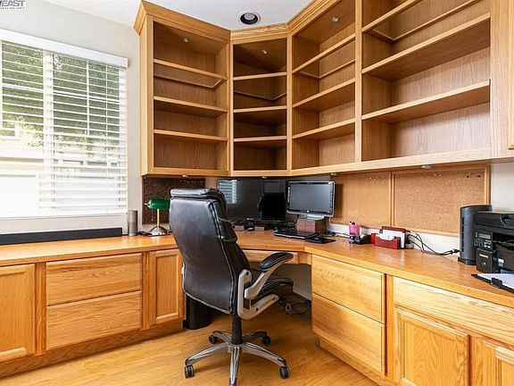 Big, beautiful Copper Hill gem nestled peacefully in the back of the complex situated on a corner lot!! Only one common wall with extra available parking close by. This home faces West and has a nice breeze going thru the home with lots of natural light thru windows with custom wood shutters. High ceilings in living room, kitchen area, and Master bedroom. Separate room downstairs for home office with built in cabinets or could be used as 4th bedroom. All brushed nickel finish hardware doors and windows. Quiet and safe neighborhood with good walking areas and near Cayetano park, Costco, Restaurants, and 580 Fwy.