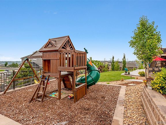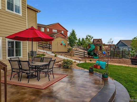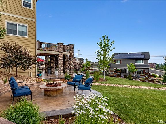 Nestled high up in Terrain in Castle Rock with amazing views! Enter through the welcoming foyer that is open to the office and dining room. Display your culinary talents in the gourmet kitchen with breakfast nook, oversized island, double ovens, gas cooktop, stainless appliances and butler's pantry. Bright and open throughout with beautiful views from every room. Spacious family room with gas fireplace. Main floor office and laundry room. Upstairs you will find four bedrooms, three bathrooms and a large, open loft providing additional living space! Primary bedroom suite with tray ceiling, large walk-in closet and private bathroom. Walk out basement for you to add your finishing touch. Meticulous yard that will take your breath away with professional elements that have been thoughtfully designed with no detail overlooked. Custom gas firepit, expansive patio, garden beds, play area, rock features, deck, shed and more! Cul-de-sac location close to the heart of Castle Rock, shopping, restaurants, gyms, I-25 and more. Living in the Terrain community offers a range of amenities and recreational opportunities. Enjoy the park, scenic walking trails, two community pools and clubhouse all summer long! New carpet throughout main and second floor. Pride of ownership abounds. Come and see for yourself!