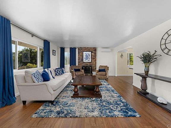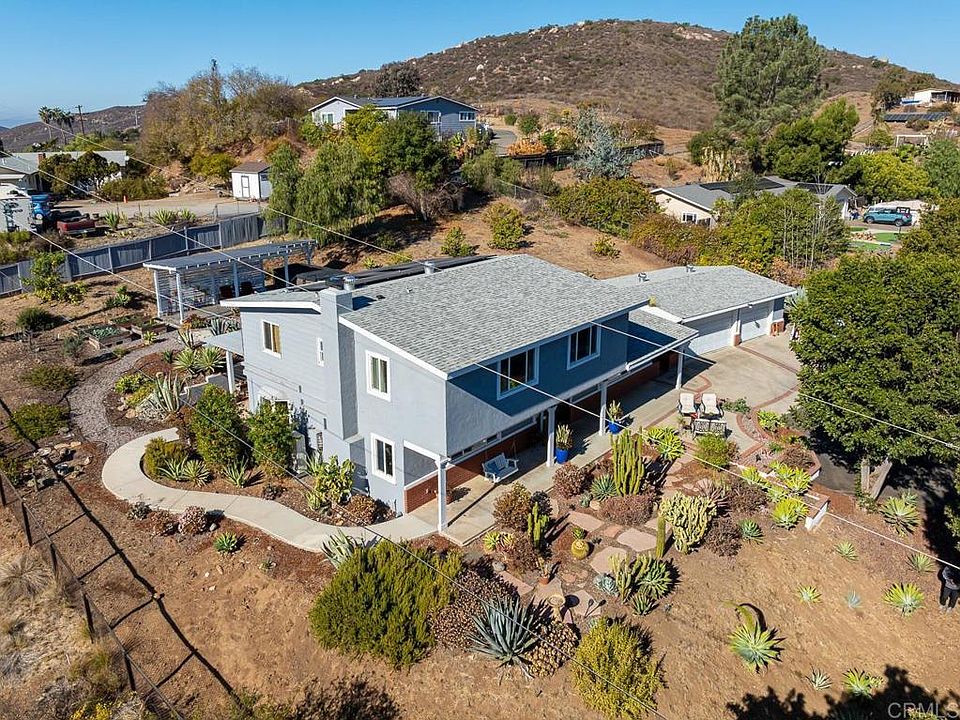 Nestled on a large, beautifully landscaped lot, this stunning home offers unparalleled privacy with its electric gated, long driveway and serene setting surrounded by mature trees. This stunning property combines timeless charm with modern upgrades, creating a serene retreat in a highly desirable location. Step inside to a spacious living room where a cozy fireplace, rich wood floors, and abundant natural light set the tone for relaxation. The adjacent dining room is perfect for hosting intimate gatherings or festive celebrations. The updated kitchen features sleek stainless steel appliances, ample counter space, and stylish finishes, ideal for creating culinary masterpieces. A large family room with tons of windows provides a bright and airy space for everyday living and entertaining. Upstairs, the expansive primary bedroom is a true sanctuary, complete with a walk-in closet. Additional bedrooms are generously sized, offering comfort and flexibility for family and guests. Enjoy year-round climate control with three mini-split systems downstairs and central air A/C upstairs, powered by a fully paid solar system for energy efficiency. The outdoor space is a true highlight, boasting lush landscaping, mature trees, and a designated garden area. Relax under the shaded pergola, unwind in the Jacuzzi spool, or enjoy quiet moments in one of the peaceful seating areas. The oversized 3-car garage not only offers ample parking and storage but also features EV charging capability, perfect for eco-conscious homeowners. A large shed provides additional storage, perfect for tools, hobbies, or outdoor equipment. Nestled in a prime location bordering Rancho San Diego & Jamul, with easy access to amenities, this home is more than a residence—it's a lifestyle. Don’t miss the opportunity to make this private haven your own!