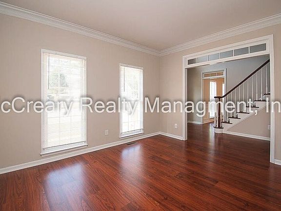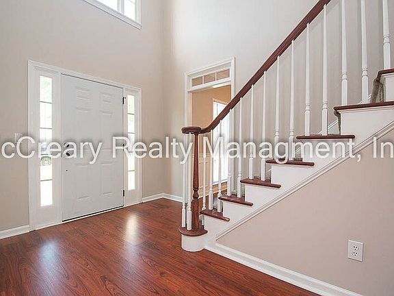 Beautiful Brick Traditional features soaring 2-story entry flanked by the Formal Living Room, and Formal Dining Room. Family Room with fireplace is open to Kitchen all stainless-steel appliances, food pantry, breakfast bar, and breakfast area. LVT flooring throughout main level; Large, newly refinished Deck of the Kitchen, and the half bath complete main level. The upper level features the main bedroom suite with ample closet space and generous Bath with double vanities, garden tub, and separate shower; 2 bedrooms and hall bath; laundry room conveniently located off the hall. Basement includes double garage with auto openers and large storage areas. Fenced back yard; patio under deck off basement; blinds on all windows. **Additional $15.00/month for Utility & Maintenance Reductions Program. Rent includes HOA access to swim & tennis!