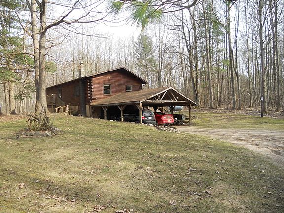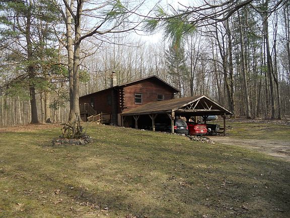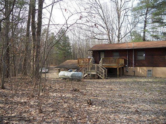 JUST REDUCED, HIGHLY MOTIVATED SELLERS!!!!! This home is situated on just over 10 acres of serene property of mostly mixed oak and hardwood. Enjoy the peace and quiet in this 4 bedroom (possible 5), 2 full bathroom, D-cut log style home. Open concept kitchen, dining room, living room combination, with one full bathroom, master bedroom and den/nursery on the main floor, with most hardwood flooring. The lower level walkout has a family room area with woodstove, laundry area, 3 bedrooms and full bath, and storage area. Firepit and 2 outside decks for family gatherings and entertainment. Explore and enjoy the beautiful views of wildlife and nature. Call today for your private showing.