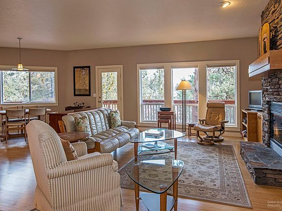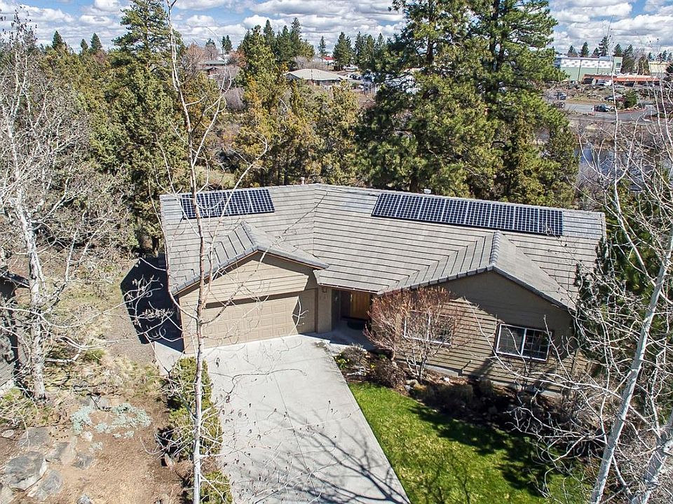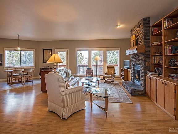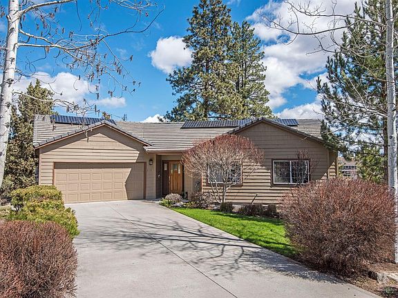 This beautiful and well cared for single level home in Rivers Edge Village backs to the Deschutes River. Featuring a great room floor plan that's light and bright with a nice gas fireplace. The kitchen has granite counter tops, pantry and Wolf range. The home has nice bamboo flooring, tile and carpet as well as tiled shower bathrooms, up/down-bottom/up blinds and built in cabinets in the great room. Main level master suite includes spacious master bath including soaking tub, tile shower and large walk-in closet. Home includes solar panels with inverter. The exterior features wonderful outdoor living with newly stained deck, pine trees, views of the river and just a short walk to the Deschutes River Trails, Sawyer Park, Shopping, easy access to Hwy 97 and the west side.