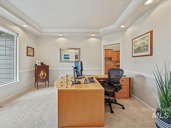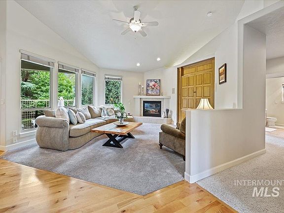 Enjoy the tranquility and splendor of the Boise foothills just outside your door in this beautifully crafted, custom single-level home, nestled in the coveted Spring Creek neighborhood of Harris Ranch. Thoughtfully designed for both comfort and entertaining this open concept floor plan showcases a gourmet kitchen with high-end appliances, classic hardwoods including a stunning built-in hutch, seamlessly transitioning to the dining room and great room with expansive windows flooding the home with natural light. The private backyard is a view to behold with inviting patios and custom lush landscaping, the perfect backdrop for entertaining. The primary suite is a relaxing and serene retreat with jetted tub, walk-in shower, including a generous closet and lovely sitting area to enjoy your favorite book. “Rise and shine”, just step outside your bedroom and enjoy your morning patio with your tea or even a little yoga. The oversized three car garage provides ample storage and workspace. Come explore the community amenities, pools, club house and fitness center. Just steps away, you can fish or kayak the Boise River and find miles of hiking and biking in the foothills or on the Greenbelt. Enjoy local restaurants, and the renowned, Idaho Shakespeare Festival.