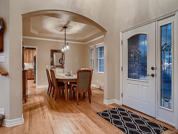 Welcome to this beautiful home in the prestigious and sought-after Soaring Eagle Estates community! With over 4600 finished square feet, including 5 bedrooms and 5 bathrooms, this home's desirable floor plan provides plenty of space to suit your needs. Step across the cozy front porch to discover a soaring 2-story entry, gleaming newly refinished hardwood flooring, and lovely designer details throughout. Highlights of the main level include a study with built-in bookcases and a bay window, formal living and dining rooms, a generous laundry area with butler's pantry, and a large open kitchen featuring a walk-in pantry and all the chef-approved upgrades you can imagine! Venture upstairs to find 4 bedrooms, including the HUGE primary suite with a luxurious 5-piece bathroom with brand new flooring and his-and-hers walk-in closets. Three more sizable bedrooms share two additional bathrooms on the upper level. In the finished walkout basement, you'll be delighted to find a wonderful flexible space area with a kitchenette, another bedroom and bathroom, and a multi purpose room with zoned heating and cooling that could function as an office, gym, or 6th bedroom! This large basement could easily work as a separate, private apartment for extended family, guests, or a tenant. You are sure to enjoy entertaining or just relaxing on the 2-story deck overlooking the serene, private backyard - and don't forget to take note of the gorgeous view! In addition to all of these wonderful features, this home has been updated with a tankless water heater, newer class 4 hail resistant roof, zoned heating and cooling systems, and built-in 7.1 surround sound. Just a short walk to renowned Douglas County schools, parks, and trails, and a quick trip to enjoy the amenities provided by The Meadows. Soaring Eagle Estates is a highly sought after neighborhood - don't miss your opportunity to call this amazing home your very own! MUST SEE!