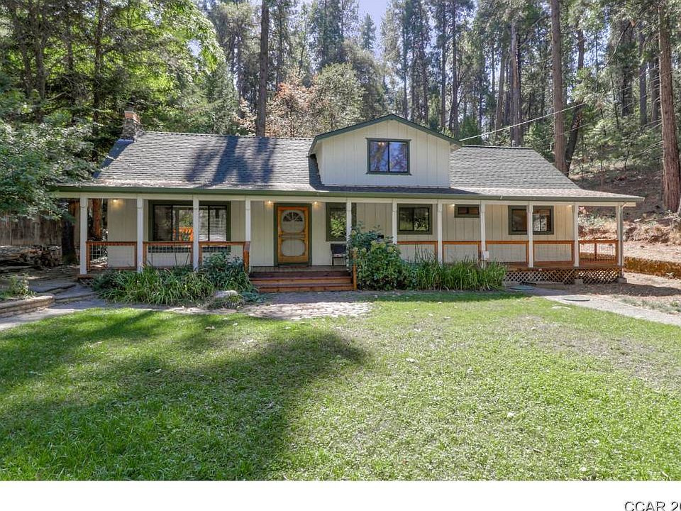 Beautiful piece of property with cedar and aspen trees lawn and lots of rock work. House sits at back of mostly level lot with large windows for front yard views. Huge covered front porch/deck with new wood. Large rock fire place with wood burning stove insert, vaulted ceilings with large beams. Large kitchen with new stainless steel appliances including double oven, 36" gas cook top with downdraft and fridge included. Laundry room, master bedroom and en suite added in 2019. Master also has vaulted ceilings. Plumbed for small gas freestanding stove, Small deck outside for morning coffee or private relaxation. Newer roof. New septic. Newer central heat. New On Demand hot water heater. New paint inside and out. Small seasonal creek feeds waterfall in winter and pond pump takes over in summer