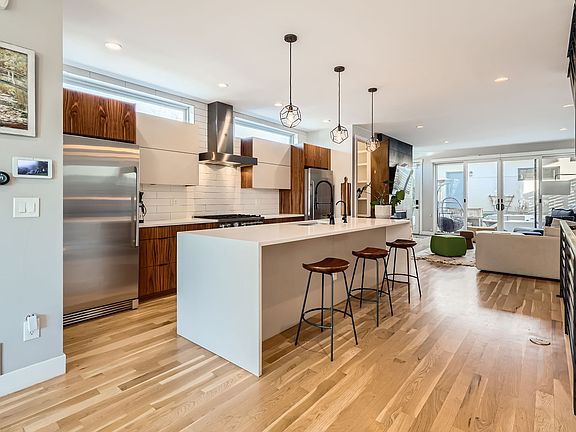 Gorgeous corner lot 4 story duplex with re-finished hardwood floors throughout the first, second, and third floor. Every floor is flooded with natural light but also equipped with power sun shades or bottom-up and top-down shades for the ultimate balance of privacy and light. When you walk into the condo, you're greeted with an open dining area, kitchen with top of the line appliances - separate fridge and freezer for maximum space, a walk in pantry, and living room area with a fireplace. The primary bedroom is cozy with an on-suite bathroom with a toilet room, shower and tub, a large walk-in closet and blackout shades. The additional bedroom on the 2nd floor also has it's own on-suite bathroom and walk-in closet. The basement is finished with a large second living room, and the top floor bedroom has a new, built-in queen murphy bed. This home is just 4 blocks from Odell's bagels . 1 year rental lease No smoking Pets must be disclosed Renter pays utilities Background and credit check required