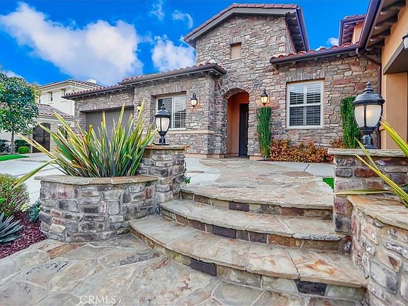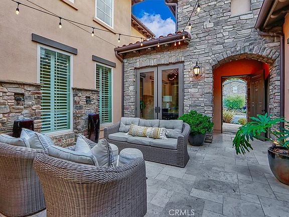 Breathtaking Whispering Hills Estate surrounded by picturesque rolling hills in a highly desirable gated community, superbly perched on a premium lot blessed with amazing 180-degree views providing a serene setting for this spectacular oasis. Boasting a rarely available and arguably the most sought-after Residence Two floor plan in the community with 4 bedrooms on the main level including a “Casita”, this stunning home has been meticulously maintained and is brimming with elegant custom features and upgrades. The classically designed Tuscan inspired exterior and manicured landscaping create a dramatic first impression. Enter through majestic stone archways into a tranquil courtyard with soothing water features and French doors opening to multiple living areas throughout this gracious home. A formal dining room opens to both the great room and the courtyard creating an elegant space for an Al-Fresco dining experience. The generous great room has ample living space for gathering around the cozy fireplace and is open to the dazzling kitchen with granite countertops, a graceful custom tile backsplash, elegant cabinetry, top of the line stainless steel appliances, a huge center prep island with breakfast bar, and a sunny breakfast nook with French doors opening to the backyard. Enormous sliding pocket doors can be tucked away providing a spectacular transition to the prized Capistrano Room with automatic screen, romantic fireplace, built-in sound system, and an ample seating area creating an ideal indoor-outdoor space for relaxing and entertaining friends and family. This amazing floor plan also includes a highly desirable main level Primary Bedroom Suite with French doors opening to the Capistrano Room and patio, gorgeous rolling hills views, and an elegant private bathroom with a huge walk-in closet. Upstairs boasts a large game room with stone work and a built-in wet bar, a spacious media room with surround sound, and an expansive bedroom suite with custom wall treatments, a large built-in work station & cabinetry, en-suite bath, and breathtaking views. The entertainer’s dream backyard is a private oasis taking full advantage of the spectacular views, with a sparkling heated pool & spa, water & fire features, an ample patio, built-in seating area with fire pit, covered outdoor kitchen with a gleaming built-in BBQ & bar, water conscious artificial turf, and fragrant fruit bearing trees. Home also includes a cost saving leased Solar System and 3 garage spaces.