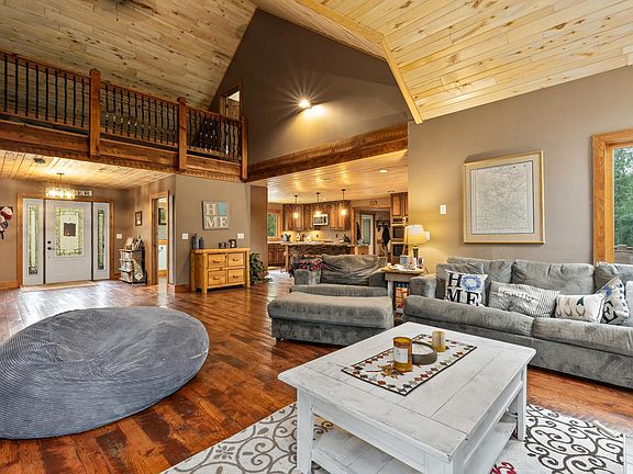 This exquisite executive home boasts a fabulous chef's kitchen, perfect for culinary enthusiasts. Revel in the rustic wood floors, stay toasty with dambiance of the wood-burning fireplace. Your grand private suite features a bonus room, ideal for an office, craft room, or any personalized use. Step out onto the expansive deck to take in the serene views of the beautiful surroundings.