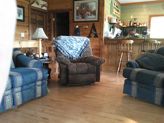 Two story cabin type home. Top floor used for living space, lower floor for storage and laundry but is partially finished and could easily be usable living space. Currently laundry facilities, second bathroom and small home office. Feels like living in a tree house or own private ranger station!