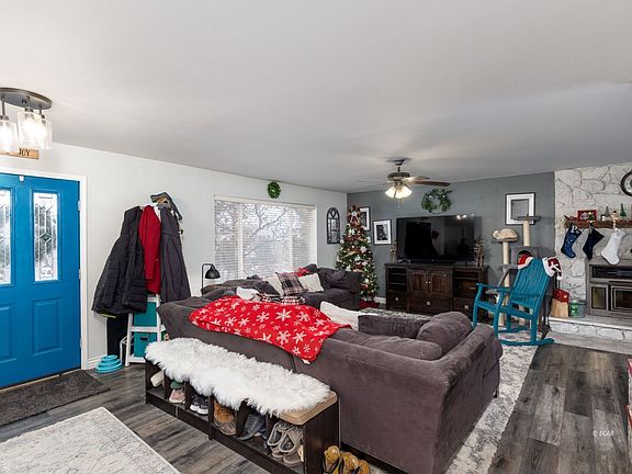 Updated 3/3/2 home with 2 additional "bonus" rooms in basement! This beautiful home sits at the end of a Cul-de-sac at the top of Peace Park in the famous Trick or Treat streets! Inside, you'll love the open concept floorplan, the dark gray LVP floors, custom stair railing, and wood fireplace. There are 2 bedrooms, one master with private bath, and a second large room, as well as a walk-in pantry/laundry room and fully updated guest bathroom. Downstairs, the sky is the limit with the spacious finished basement. There's also a second option for another master bedroom and 2 additional bonus rooms with walk-in closets. There's even a secret staircase leading from the basement to the huge garage. Outside, enjoy the multiple fruit trees and grape vines, RV parking, storage shed, cement slab perfect for entertaining, and the newly installed French drain! The safe, quiet neighborhood is great for those wanting their privacy while still wanting to connect with others, and for those who love the holidays, you'll be blown away with the festive spirit of everyone. Homeowners are moving to Alaska, so much of the personal property is available for purchase as well. Don't miss out!