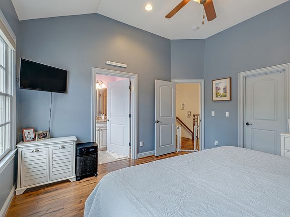 High ceilings, crown molding, spacious rooms, great natural light & hardwoods throughout. Cozy 2nd story living room with fireplace & built-ins, two balconies, great storage in the kitchen and throughout. Attached baths with every bedroom! Two Car garage.