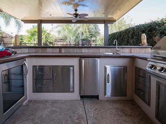 Spectacular four bedroom family home in Clovis Unified School District. From the charming facade with dormer windows and a welcoming entrance courtyard to the incredible backyard entertaining area complete with an outdoor kitchen, you'll love every inch of this perfectly updated home. Quality finishes and a fresh, neutral backdrop ensure everything is more than move-in ready. Gorgeous gourmet kitchen opens to the great room and breakfast nook and features gleaming granite countertops, stainless steel appliances and a huge center island where family and friends can gather. Dark wood cabinets lend an elegant, contemporary feel to the space. Plantation shutters throughout the home offer privacy while keeping things light and bright! Covered patio overlooks the serene and lushly landscaped pool area.