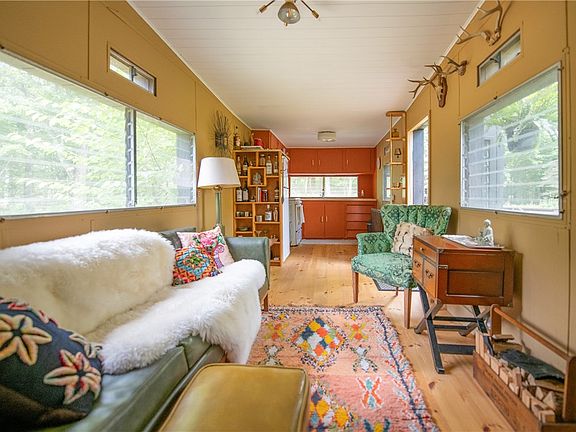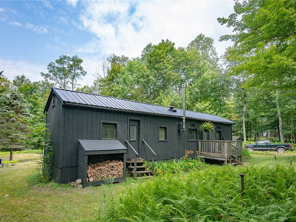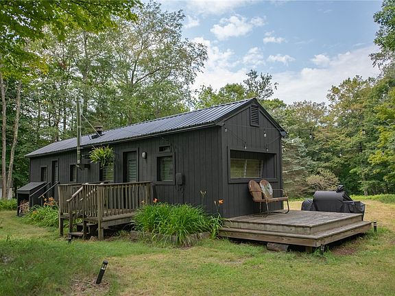 A little slice of heaven in the popular town of Andes. When it comes to maintaining an upstate home, less is more. This turn-key tiny home on 4.9 acres has been thoughtfully redesigned. The kitchen feels quite spacious, with lots of storage, a gas stove, and a new refrigerator. The bright living room includes a small wood stove, which can easily heat the entire house on a cozy winter night. There is also electric heat. A stylish office makes for a great work-from-home experience, equipped with high-speed internet. The ensuite bath includes a bath tub and new tile. The bedroom fits a full bed, which is surrounded by attractive wood paneling and additional storage. The backyard provides a private open lawn for entertaining. There are two storage sheds for your garden tools and kayaks. Located on a town-maintained road near the Pepacton Reservoir, you are just up the road from the boat launch. A 2 hour 30min drive to the GW Bridge, this home would make a wonderful weekend retreat. Owner financing is available. Most of the furniture can convey with the property.