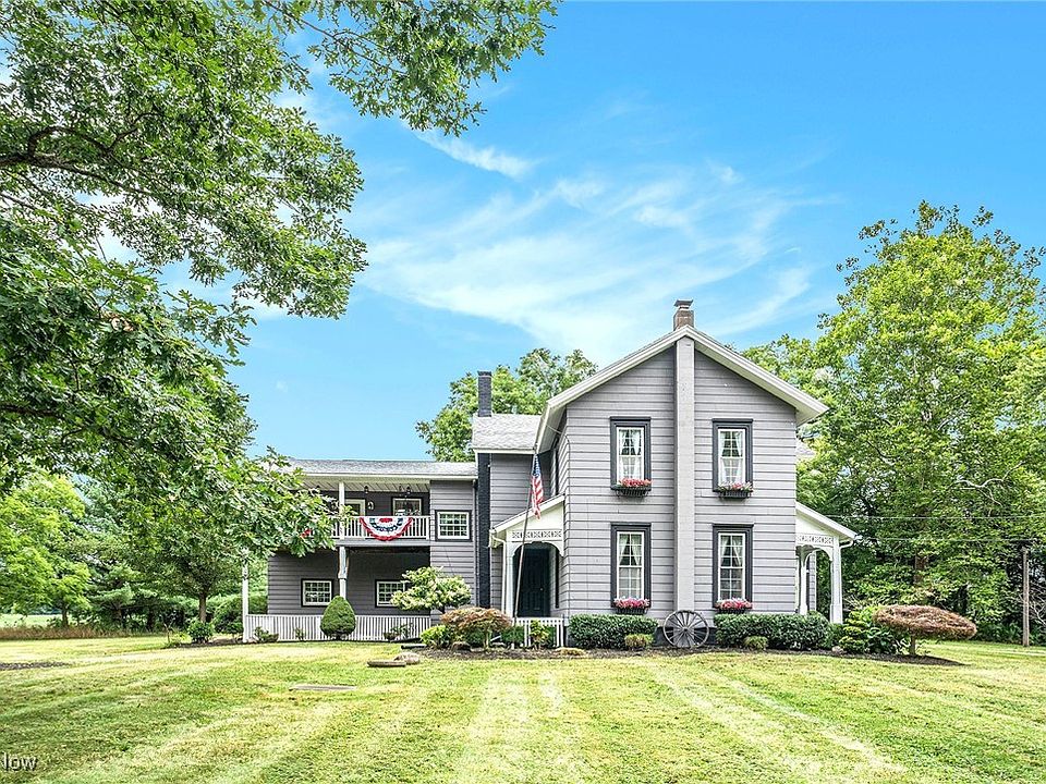 Stunning Victorian Century home on 3+ beautiful acres in Austinburg ~ ideal for families or investors! This historic gem blends timeless charm with modern updates, featuring soaring ceilings, tall windows, vintage doors, & oversized bedrooms. Three Bedrooms with huge potential for more. The unique layout includes 3 separate stairwells to the 2nd level. An additional living suite on the 2nd level is perfect for an in-law suite w/ a Kitchen, half Bath plus its own private entrance w/ a Deck ~ great for multigenerational living or rental income. The Bonus Rm off the addtl Suite could become its private Bedroom. A 1st floor Bedroom offers convenience. Enjoy the peace & beauty of the natural surroundings from the expansive front Balcony Porch, an ideal spot to unwind & take in the view. The property includes 2 versatile Outbuildings & an oversized 3-car attached Garage, offering abundant space for hobbies, storage or future expansion. Recently updated with public water, this home is move-in ready while offering incredible investment potential. Whether you're searching for a spacious family estate or an income-generating opportunity, this is a rare find full of character & possibilities!