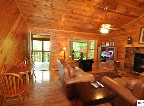"Simple Pleasures" is a gorgeous 2 bedroom, 2 bath wood cabin located just outside of Pigeon Forge offering privacy & wooded views. Located in the Shagbark area, approximately 15 minutes from Pigeon Forge, Dollywood & Splash Country, and 20 minutes from either Townsend or Gatlinburg. Offering paved roads all the way to the resort area. This 2 bedroom, 2 bath cabin sleeps 4 and is all 1 level. Fully equipped kitchen with bar seating for 4, a living area with a sofa, loveseat, gas fireplace, stereo, and TV. Queen bedroom has its own private bath with a whirlpool tub and a full bedroom. There is also an additional bathroom with a shower/tub combo. Wrap around deck that offers rocking chairs as well as the relaxing hot tub. This private and secluded cabin offers peaceful wooded views and a relaxing atmosphere. Cabin has recently be stained with in the last two weeks. Pac Man machine does not convey.