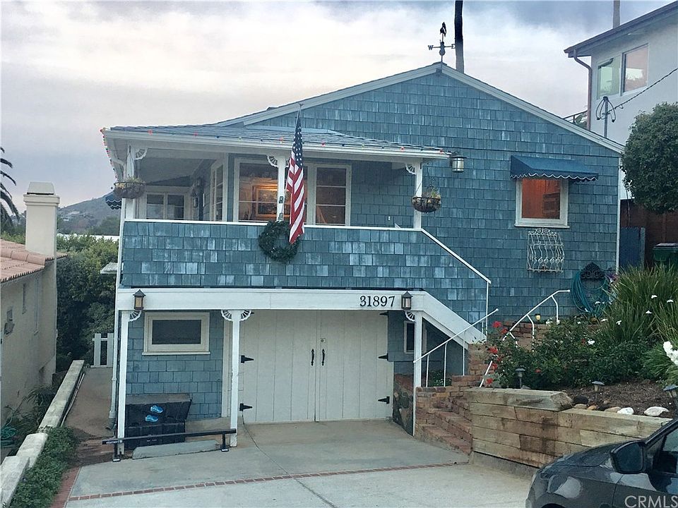 Classic Laguna "Beach Chic" Cottage with ocean, sunset & Catalina Island views*Located walking distance to coveted beaches, including the legendary 1000 Steps Beach...right down the street!*This house is full of charm, character & nice updated features too..like custom Cherry kitchen cabinets, blt-in appliances (incl. Subzero refrigerator),gorgeous granite counters, recessed lighting & more!*Light, bright & cheery interior...fresh paint & sparkling clean...move in ready...relax and start enjoying beach life!*Ocean views from most living areas & 3 decks*Features include hardwood floors, fireplace, spacious family rm w/ blt-in bookcases & plenty of windows to enjoy the views*Main (top) floor also features a charming bedrooms w/ French doors leading to lovely deck..*Also adjoining this bedroom is a full (remodeled) bathroom w/ custom cherry cabinetry & dual sink vanity.*Lower floor includes 2 bedroom 1 3/4 bathrooms laundry room & access to the attached single car garage are on the lower level.*This house has a rare feature not usually found in Laguna...parking...that's right, the oversize driveway could accommodate 4 cars (+ 1 car garage)*Another awesome feature of this property is the oversize lot - there is actually a nicely landscaped yard w/ lawn & room for a vegetable garden too...so bring your green thumb!*This home is really special...everyone who visits always feel welcome, happy & peaceful here.