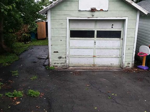 Two Story, 3 bedroom starter home in need of a little TLC. Full unfinished basement, 1st floor consists of kitchen, dining room, living room and full bathroom. 2nd floor has 3 bedrooms and home has a full attic. Has small yard with storage shed and garage. Shared driveway.