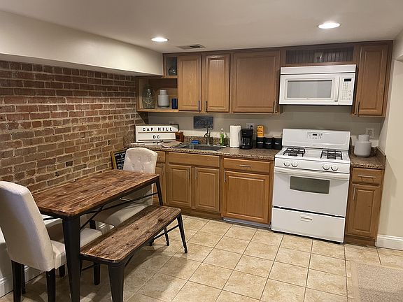 Charming Capitol Hill English basement apartment located near 14th and C St NE, just blocks away from the lovely Lincoln Park. The unit is currently partially furnished with a dining table + bench, couch, coffee table, tv, queen bed, 2 nightstands, standing mirror and dresser (the desk and workout equipment pictured are not included). Enjoy a private entrance to the apartment with full kitchen, living space, bedroom (secluded from kitchen but open to hallway) with a large walk-in closet, bathroom with walk-in shower, and washer/dryer. There is one window in the kitchen and one in the bathroom. New carpet was recently installed in the bedroom, the rest of the unit features tile. This is a two-unit building and the owner's live in the top unit. They are a family of three, including a child, and a small dog. Walkable to Eastern Market, Barracks Row and H Street. Convenient bus route to downtown at the end of the block. There is ample street parking available and owners can provide a temporary street parking pass until tenant obtains DC tags and parking permit. Electric, gas, water and trash included in monthly rent. $1000 deposit required. No pets and no smoking. There is currently a tenant in the unit so tours will be accommodated on a case-by-case basis. Available October 11th. Electric, gas, water and trash included in monthly rent. $1000 deposit required. No pets and no smoking. There is currently a tenant in the unit so tours will be accommodated on a case-by-case basis. Available October 11th.