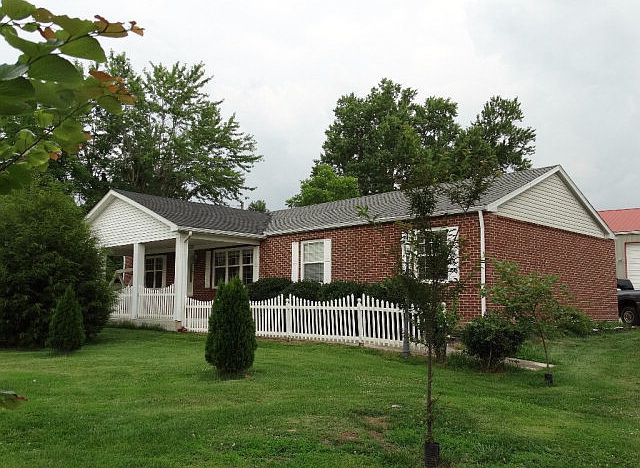 Custom Modular Brick Home upgraded in 2005 with large covered front porch, 12x20 concrete patio, added insulation and underpinning to maximum standard. Well maintained home offers 3 bedrooms, 2 baths, kitchen with all appliances plus a center island, large living room and family room with vaulted ceilings. Windows open inside for easy cleaning. Central vacuum system. Built in ironing board with electricity. Plenty of storage. Property features a 40x50 metal garage with workshop that can park 4 cars plus and RV. An additional 1-car detached brick garage also on the property. Open area inside handicap accessible but outside ramp can removed. Home is available for immediate possession.