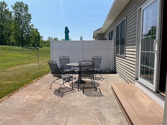 This beautiful Townhouse in Canastota boasts 1,559 square feet! Eat-in custom kitchen with granite counters and appliances! Large living room with vaulted ceiling, hardwood floor and door to rear patio. Three bedrooms, 2 1/2 baths - 2 bedrooms are on the 1st floor! First floor laundry with washer and dryer. Full basement with poured foundation, central air, 2 car attached garage with electric door opener. No outside work - the HOA takes care of the lawn care, trimming of front trees, shoveling of snow from sidewalks and snow plowing.