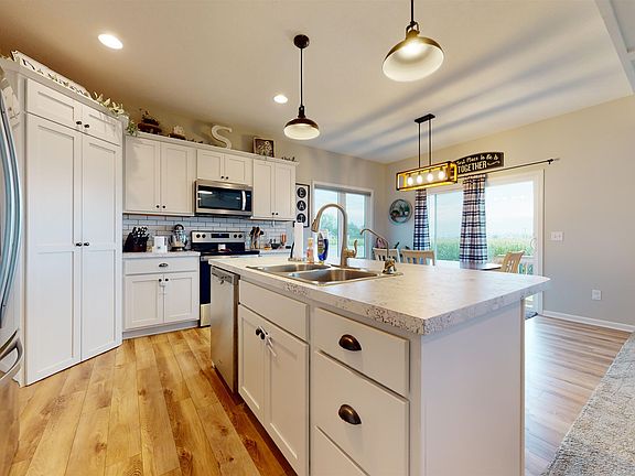 STUNNING 3 YEAR OLD RANCH HOME IN CENTENNIAL PARK WITH FINISHED BASEMENT! OPEN FLOOR PLAN WITH 9' MAIN FLOOR CEILINGS, LARGE SOUTH FACING WINDOWS PROVIDING LOTS OF NATURAL LIGHT. KITCHEN FEATURES A CENTER ISLAND, WALK-IN PANTRY AND SS APPLIANCES. OWNERS ENTRANCE HAS A DROP ZONE BENCH ALONG WITH CONVENIENT MAIN FLOOR LAUNDRY. LVP FLOORING IN KITCHEN, DINING AND LAUNDRY. CULLIGAN RO AND WATER SOFTENER. FENCED BACK YARD, 14X14 PATIO. CLEAN AND MOVE-IN READY! PREFER NO SHOWINGS BETWEEN 12:30 AND 3 PM WEEK DAYS