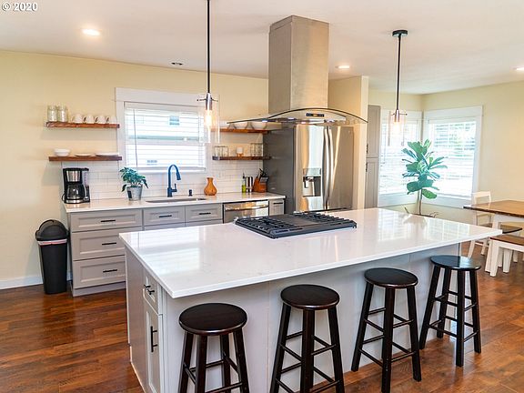 Freshly remodeled home w/ thoughtful updates & a tasteful color palette! A new roof, siding, gutters, windows, new electrical panel, ductless heat pump, flooring, bath & kitchen updates are just some of the updates made.This stunning kitchen is truly the homes center w/ a gas range, quartz countertops, ss appliances & breakfast bar.A certified wood stove to save energy during cold winter months.The fenced backyard has raised garden beds, shed w/ lean-to, covered deck, patio & hot tub connection
