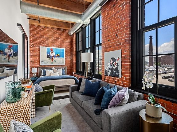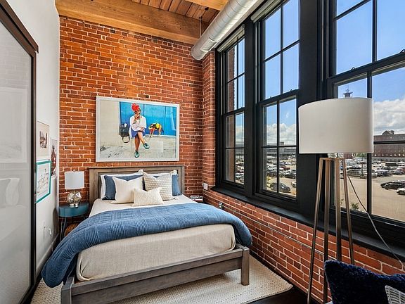 Classic loft style living in the heart of Fort Point. Embracing the building's original brick and beam architecture, this converted warehouse space now features a stunning studio home with dramatic 13’ ceilings, almost 7’ tall south facing windows, and 462sf of open concept living featuring a chic kitchen with black stone countertops, wood grain / dark gray two-tone cabinetry offering ample storage, stainless steel appliances, glossy white tiled back splash and space for a kitchen island for extra counter space and eat in kitchen potential. This home is complete with a spa-like bathroom with glass enclosed shower, a custom built closet, exposed brick throughout, rich dark wood flooring, a common roof deck with two gas grilles & skyline views and an exciting and central location convenient to Seaport & Fort Point’s eclectic dining scene, stunning waterfront and all Downtown Boston has to offer.