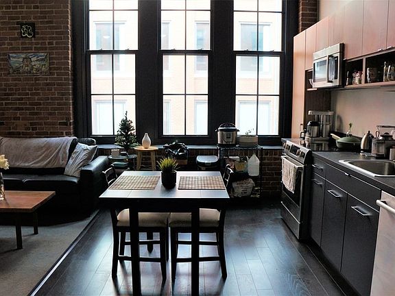 IMPORTANT: Affordable housing unit subject to Boston Housing Authority income limits - Unit subject to an affordable housing covenant.Boston Housing Authority Limits 1 person household ($66,650-$83,300); 2 person household ($76,200-$95,200) Max household assets $100,000, excluding retirement. OWNER OCCUPANTS ONLY.SEAPORT DISTRICT! This fabulous studio has all the character of a true industrial loft with all the luxury of a modern home converted in 2016. This loft style, open floor plan has soaring 13ft ceilings, brick and beam construction and massive warehouse style windows. Kitchen with honed black granite countertops, Bosch stainless-steel appliances and wood flooring throughout complement this amazing space. Custom wood wall offers partial separation between bedroom space and living area. Walk-in closet with built-ins, in-unit laundry, bike room and common roof deck. Garage parking options can be found next door at Necco Garage.