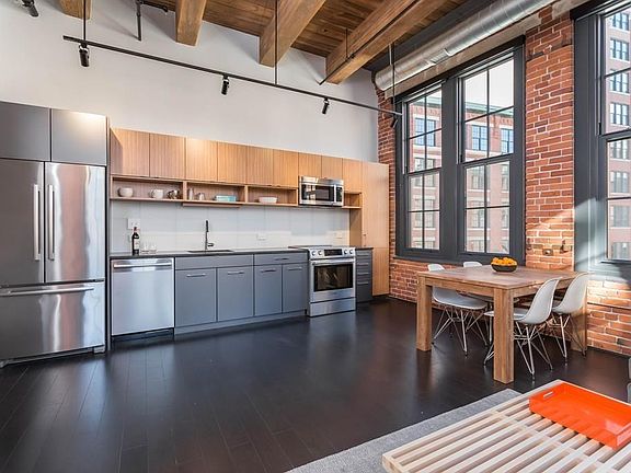 FURNISHED. New in October 2016, this exquisite corner brick/beam condominium loft in the heart of burgeoning Fort Point Channel is ready for you to arrive with only your suitcase. Two bedroom/two bathroom corner loft with 12'+ ceilings, hardwood floors, & exceptional light. Views from the kitchen & living room stretch all the way up the curve of beautiful Melcher Street & also down A Street towards Congress Street, in the evening catching the twinkling light installation below the Summer Street bridge. Master suite is outfitted with a king-sized bed & spa-like bath with glass enclosed shower. Second bedroom has a queen-sized bed. New linens & fully equipped kitchen. Elevator. Common roof deck. Central A/C. Numerous parking options available w/in a few short blocks. Non-smoking building. No pets, please. Within a few short blocks of Row 34, Sportello, Menton, Drink, & many other eateries/bars. A short commute to the Red Line T/South Station commuter rail. Close to all major highways.