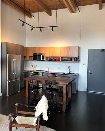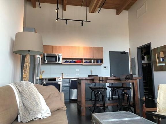 Located in the Seaport District's/Fort Point Area, offers select luxury amenities with sophisticated style. Designed with a contemporary, urban feel, the residences feature polished chrome fixtures and honed black granite countertops. Amenities include an on-site restaurant, boutique loft-style lobby, covered drive-through, garage parking, and a landscaped private roof deck with comfortable seating, multiple outdoor grills, a dining table that seats 10, and expansive views of downtown Boston and Fort Point Channel. At 319 A Street, you'll find yourself surrounded with a wealth of fine dining and cafes as well as a vibrant community and an evolving neighborhood. This top floor one bedroom unit faces west to undeveloped land offering unrestricted view from the unit. 18'+ ceilings with wall length windows offer incredible light. The unit is quiet with a storage unit on one side and sound proof walls protecting sound from the unit on the northern side. Great neighbors and very friendly building community! Tenant pays for utilities. Dogs are allowed but subject to a fee as per building requirements. One year lease minimum. No smoking as per building policy. Street parking is available but limited. There are also parking garages available for lease in the area. Partially furnished.
