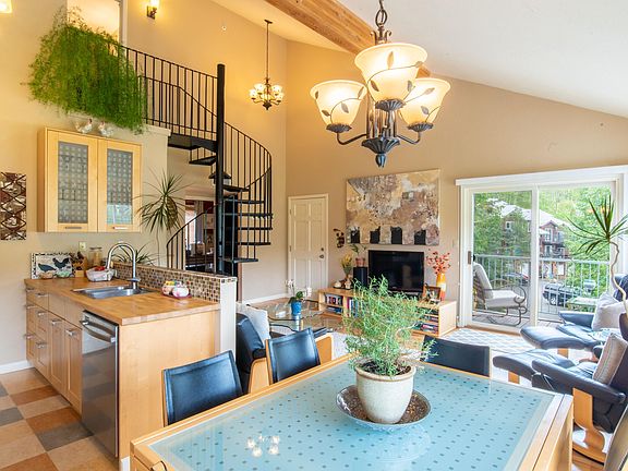 Local's Deed Restriction. This beautiful top floor 3 bedroom condo is one of the best in town, a rare find for locals. Vaulted ceiling, wrap around deck and a large garage with storage and a workstation.Re-modeled with hardwood floor and new carpet, kitchen cabinets, custom lighting, bathroom fixtures and kitchen appliances. Large master suite with good closet space.South facing with good solar passive exposure. 2nd & 3rd Bedroom and baths have been re-modeled. Excellent HOA. LIberal Mountain Village Deed Restrictions, anyone can buy just has to be occupied by a local who lives and works here full time.