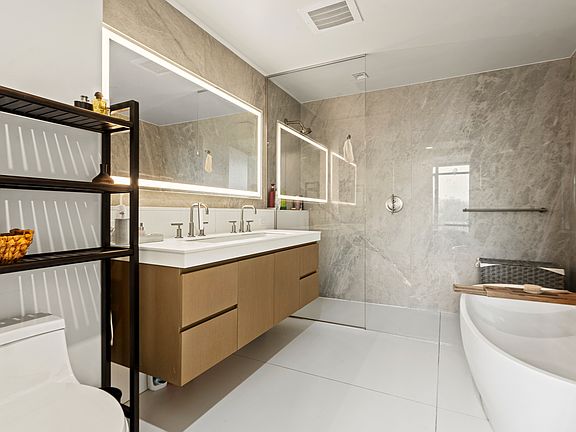 Move-In Ready Luxury 2BR/2BA Condo with Parking Full-Service Building! This sophisticated home is bathed in natural light, featuring floor-to-ceiling windows, wide white oak flooring, and a private balcony perfect for relaxing or entertaining. The gourmet kitchen comes equipped with high-end Thermador appliances, custom cabinetry, and sleek stone countertops ideal for those who love to cook or host. Both bathrooms offer a spa-like experience with premium porcelain finishes and stylish custom vanities. Additional highlights include: 1 dedicated parking spot included Washer & dryer in-unit Modern open layout 24/7 concierge, fitness center, and other luxury amenities Enjoy the best in comfort and convenience this home is truly luxury living at its finest. Schedule your private tour today! Renter is responsible for electricity and internet. 1 paring space is included.