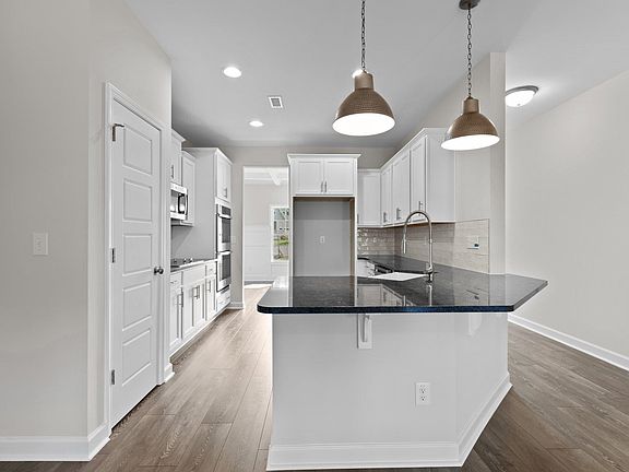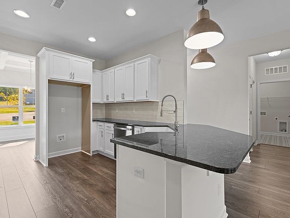 $5k DESIGN CENTER INCENTIVE W/CONTRACTS BY 8/30/23! Huge RockingChair Front Prch! 7.5" WidePlank HwdStyleFlrng Thru MainLvng! "First Star" DesgnrPaintColor ThruOut! Kit: White Painted Cbnts w/Crwn, Corner Lazy Susan & Nickel Hardware, "Steel Gray" Granite, 3x12 "Naive" White Bricklaid Tile Bcksplsh (Designed to Mimick Natural Materials), RcssdLghtng, Gourmet Kitchen Layout Incl GE SS Appliances- Cooktop, Double Wall Oven & VentedMicro! Breakfast Bar, DsgnrPendantLghts & White Farmhouse BarclaySink w/Nickel PullOut "Foodie" Coil Faucet! Mstr: TreyCeilng, PlushCarpet & CeilngFn! MstrBth: White Painted Dual Vanity w/"Grey Expo" Quartz & RectangleSinks! Priv WaterClst w/ComfortHeight Elongated Toilet, 12x24 TileFloor, WalkIn Shower, Sep GardenTub & WalkIn Closet! FamRm: Gas Log Fireplace w/Slate Srrnd & CstmMantle! CeilngFan & French Door Access to Covered Porch! Both Secondary Bdrms Upstairs w/WalkInClsts! DiningRm w/DesgnrPaintColor, 5' Wainscoting, CofferedCeilng & DsgnrChandelier!