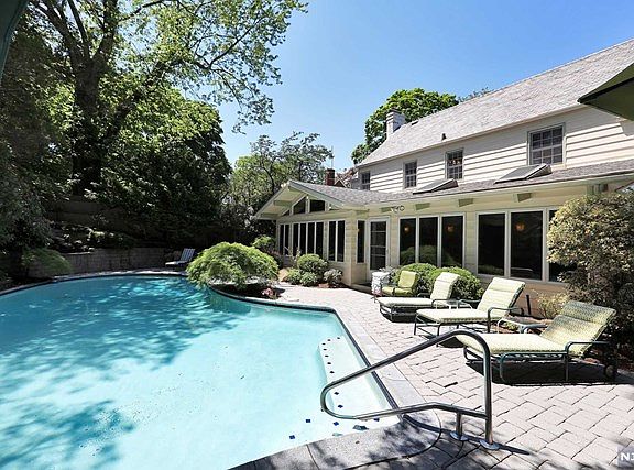 The location and home you have been waiting for! You will love this gracious fully renovated 4 bedroom 3 full bath colonial set on Englewood's East hill with a heated gunite pool, tranquil waterfall and lushly landscaped backyard for privacy .The first floor offers a large entry foyer, living room with marble fireplace ,library/office. The large sunroom /family room has a vaulted ceiling ,large oversized windows overlooking the beautiful backyard ,is perfect for entertaining. Stunning custom chef's kitchen includes 6 burner dacor cooktop, double GE oven, large center island ,granite countertops and crown molding.The second floor offers master bedroom with master bath ensuite , jacuzzi tub and shower. Two additional large bedrooms and full updated bath. The third floor offers one bedroom and exercise room. Ground level finished basement has a recreation room and laundry room. Attached two car garage and generator.Close to transportation and just six miles from Manhattan!