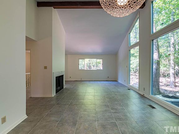 Hilltop one level with finished basement and separate basement apartment with separate entrance, kitchen, deck. Beautiful wooded views out of every window of the house. Great room with vaulted ceiling, fireplace, stone floor. Shortly prior to putting house on market: roof replaced, exterior painted, apartment flooring replaced and painted. WALK to Umstead Park, Bolin Creek Greenway, Franklin Street, Bus Stop.