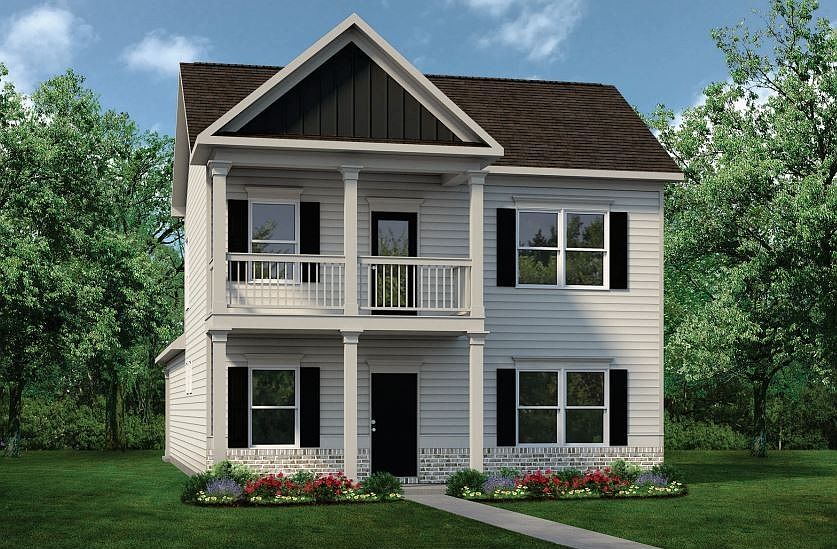 The Callaway II at Stratford Station by Smith Douglas Homes. Classic colonial curb appeal is a signature of the Callaway II, one of our popular two-story homes with a first-floor owner's suite. Guests will arrive at the covered front porch into a spacious and inviting family room, while owners will more often enter from the rear-load garage or patio. There, a bright and generous utility room and walk-in pantry are sure to help keep the main living areas of the home clutter-free. Two extra-large bedrooms upstairs share a hall bath and loft allows for extra flex space, or could be optioned to a bedroom 4.