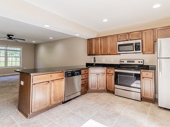 Upgraded kraftmaid cabinetryLarge deck off kitchenAttached garageGranite kitchen countersOpen floor planBeautiful landscapingGe stainless steel appliances